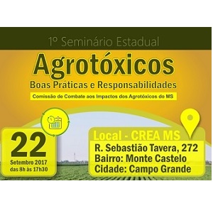 Acontece em Campo Grande, no dia 22 de setembro, o I Seminário Estadual Agrotóxicos: Boas Práticas e Responsabilidades, que está sendo organizado pela Comissão de Combate aos Impactos dos Agrotóxicos do Mato Grosso do Sul. – Evento gratuito.